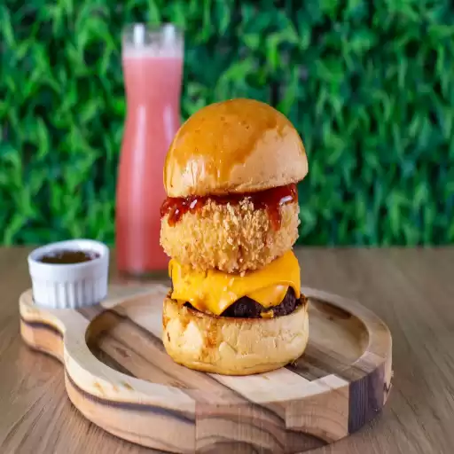 Pão de brioche, Burger 150g, Catupiry Empanado, Queijo Cheddar, Geleia de Pimenta e Molho Especial