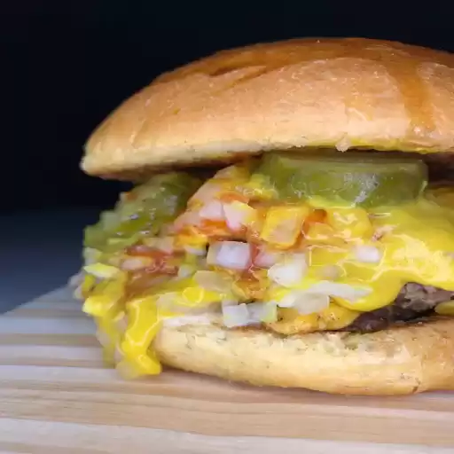 Queijo cheddar, ketchup, mostarda, picles artesanal e 2x smash 90g